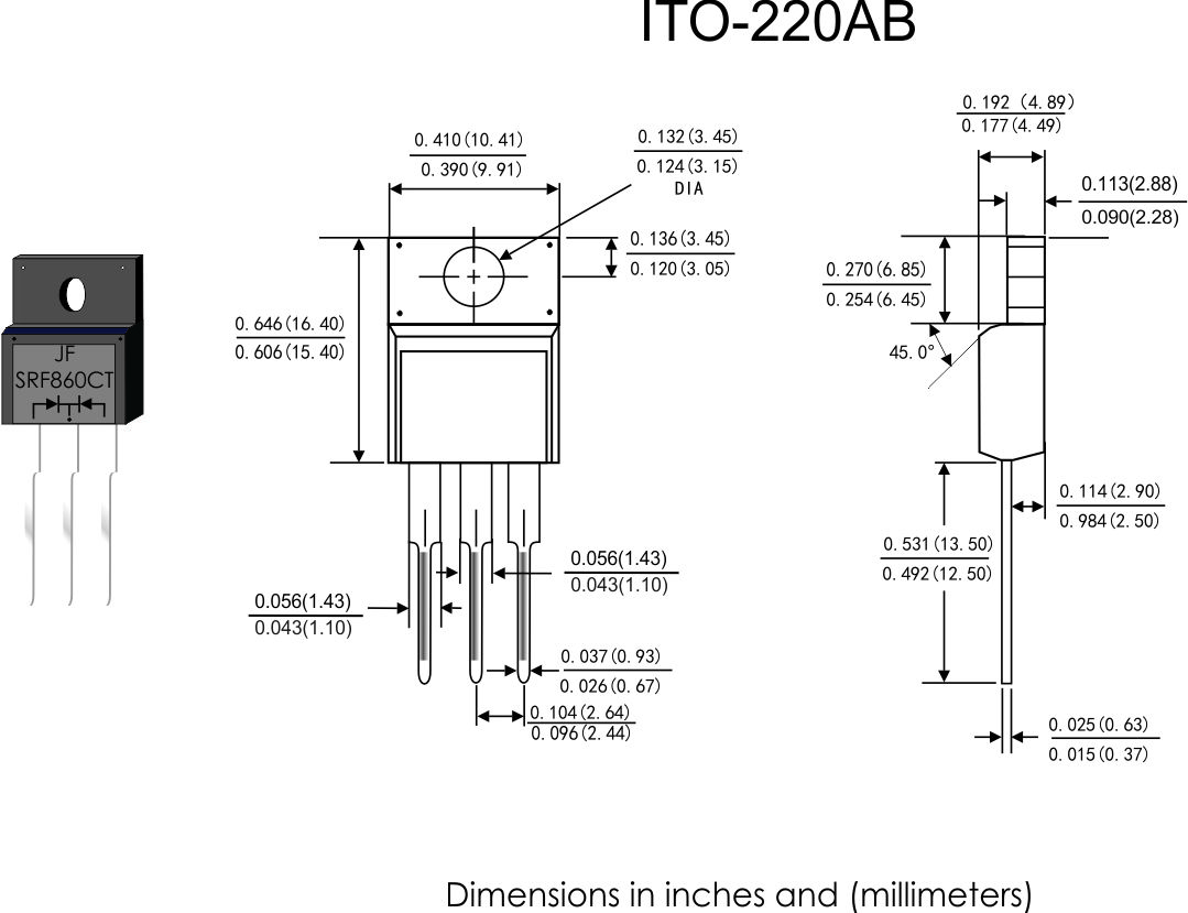 | SRF3045CT | 下載 | 30.0 | 45 | 250 | 0.60 | 15.0 | 100 | ITO-220AB | |